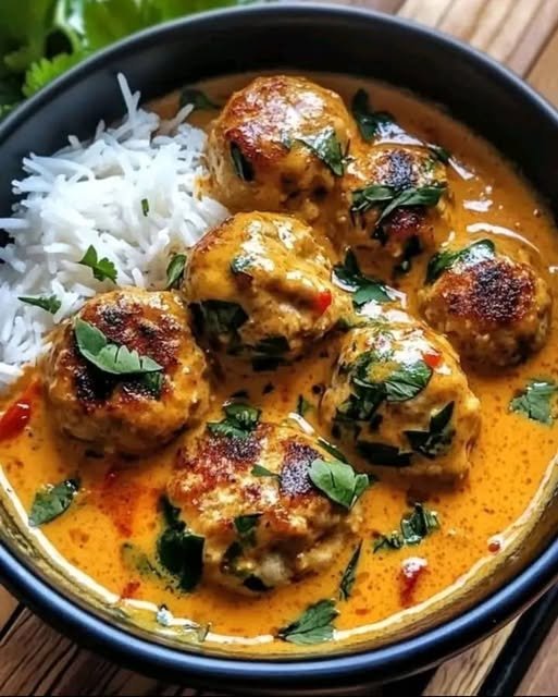 Here’s a rich, comforting Chicken Meatballs in Coconut Curry recipe—perfect with basmati rice or warm naan.